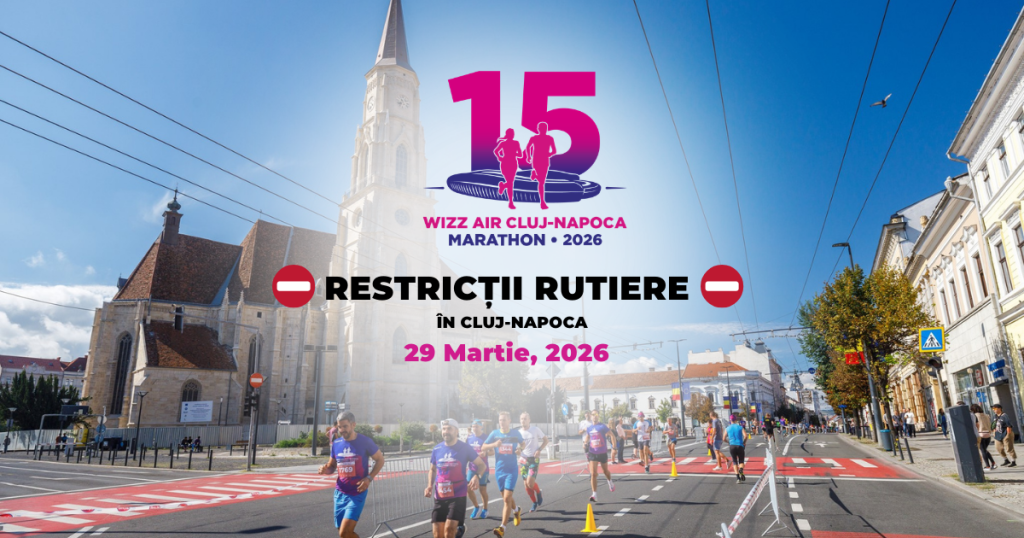 În contextul desfășurării  Wizz Air Cluj-Napoca Marathon (29 martie), vor fi instituite restricții temporare de circulație în zona Cluj Arena și pe arterele adiacente. Participanții la trafic sunt rugați să respecte semnalizarea rutieră temporară, indicațiile forțelor de ordine și să utilizeze rute alternative pentru evitarea zonelor restricționate. Pentru detalii suplimentare va rugam accesati urmatorul link: https://tinyurl.com/4yrcns6w